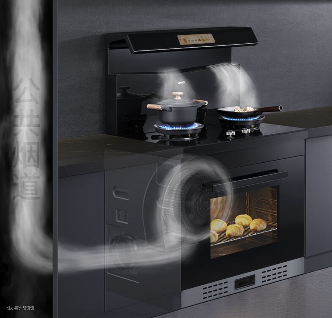 这就是具备了蒸烤一体机功能的集成灶。 要知道, 蒸烤一体机这个就是现代厨房的神器, 性价比高, 精准控温, 烹饪模式多种多样, 一机多用, 能够代替烤箱, 蒸箱, 空气炸锅, 甚至微波炉, 其实就是间接的节省空间了, 还支持各种不同的烹饪需求 甚至有时候都不用开明火就可以完成非常多的菜品, 属于厨房的一个全才。蒸烤一体机还具备自清理功能, 基本做完复杂菜品后, 也不用为收拾打扫去费心了。 蒸烤一体机可以完美覆盖你厨房和日常做饭美食的方方面面。
