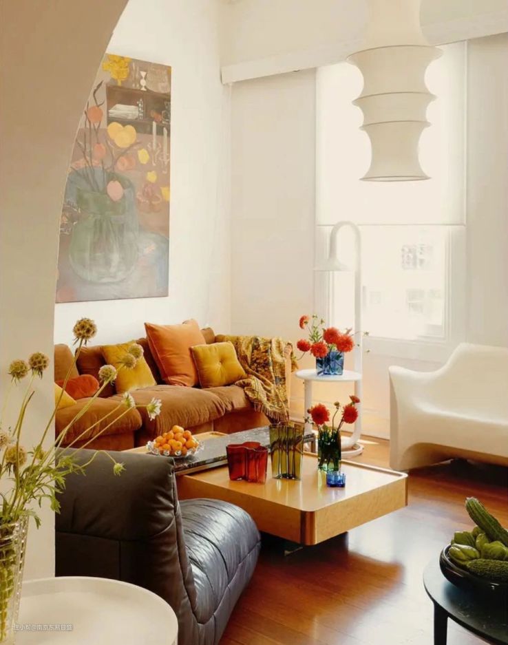 对比色:让空间色彩更加丰富,比如沙发是黑色,那么挂画可以选择红色,制造强烈的色彩冲击,营造出浓浓的艺术氛围感。