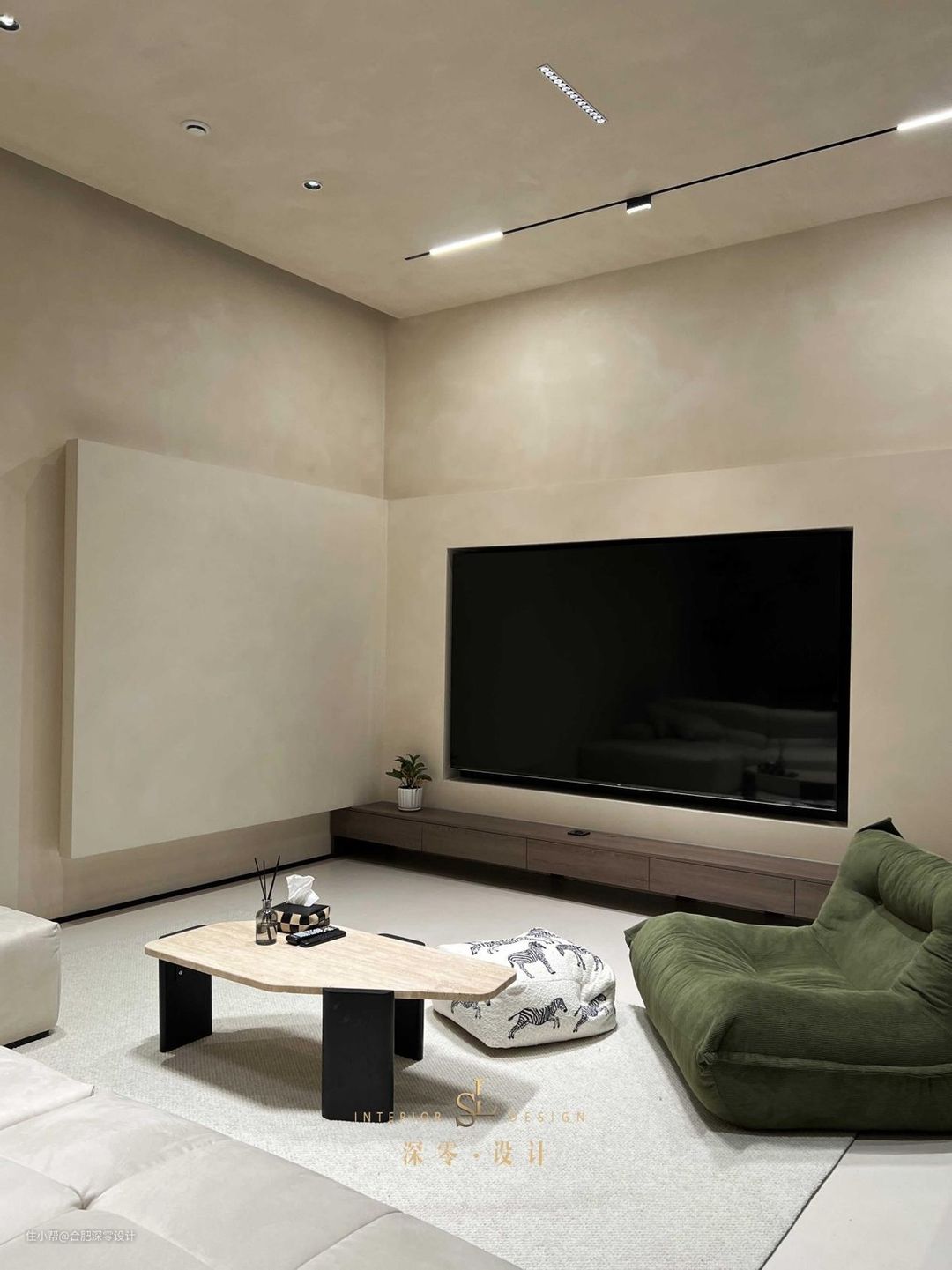 墙面用的是艺术涂料,才有了眼前的效果,尤其上手后的质感,非一般的乳胶漆可以做到,将客厅安置在地下室,摆明了就是十足的私人空间,毕竟放在现在,家里一年到头也来不来几个人。