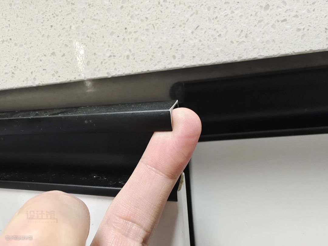因此,橱柜一般是要保留拉手的,但为了做成“无拉手”的设计效果,一般橱柜的拉手都会做的比较独特,比如与柜门平行的G形拉手,用这类拉手的话,一定要关注边角位置,一些粗糙的劣质拉手,就会非常锋利割手了。