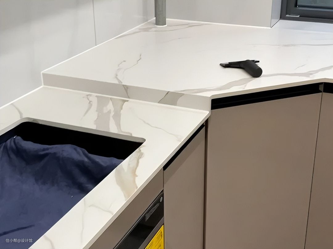 而从颜值的角度考虑,就建议选用岩板的台面。