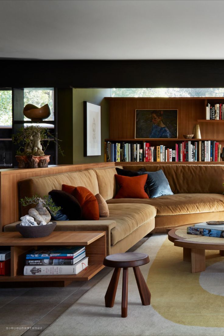 2.客厅布局,摒弃沙发贴紧墙面,对面则是电视背景墙的形式,把沙发换个角度,增加空间的立体感和深度。少了电视背景墙,布局也会灵活很多