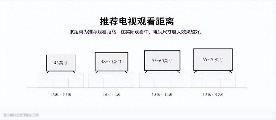虽然我也说了尺寸参照意义不大,但是还是有一个相对的参考数据可以给大家看下。统一尺寸,建议最好对应其推荐的推荐距离的下限,这样选择的电视观看会更加合理。另外多提一句,不少家长担心电视过大对小朋友视力有影响,其实大可不必,大电视相同条件下现实更加清晰,对视力的伤害反而不大,合理的控制小朋友观看电视的反而更加重要。