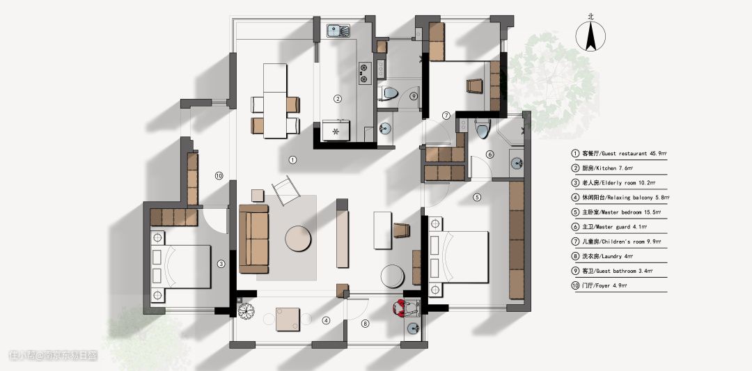 本案采用北欧风格,注重人与自然、社会、以及环境的融合,集中体现绿色、环保与可持续发展的设计理念,呈现出对手工艺传统和天然材料的尊重与偏爱,并在形式上更柔和有机,富有浓厚的人情味。