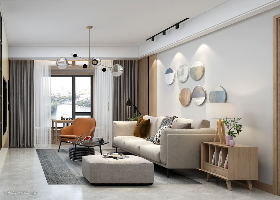 围坐式沙发的设计凸显居家氛围,整体呈现偏暖色,让人在回到家里后更舒适安心。纯粹的线条视觉美搭配整体和谐的色彩,不动声色地营造出北欧风深邃从容的氛围。