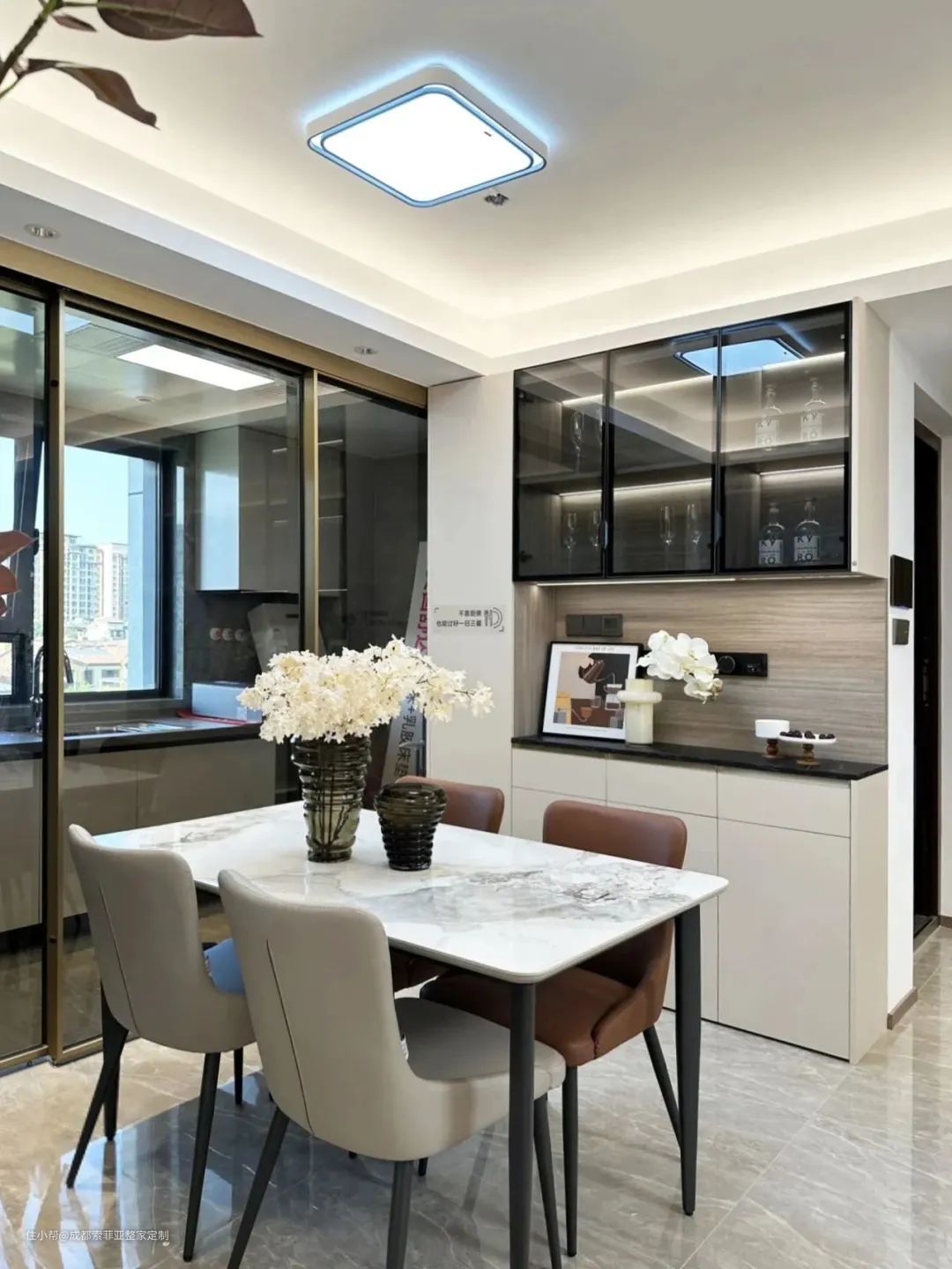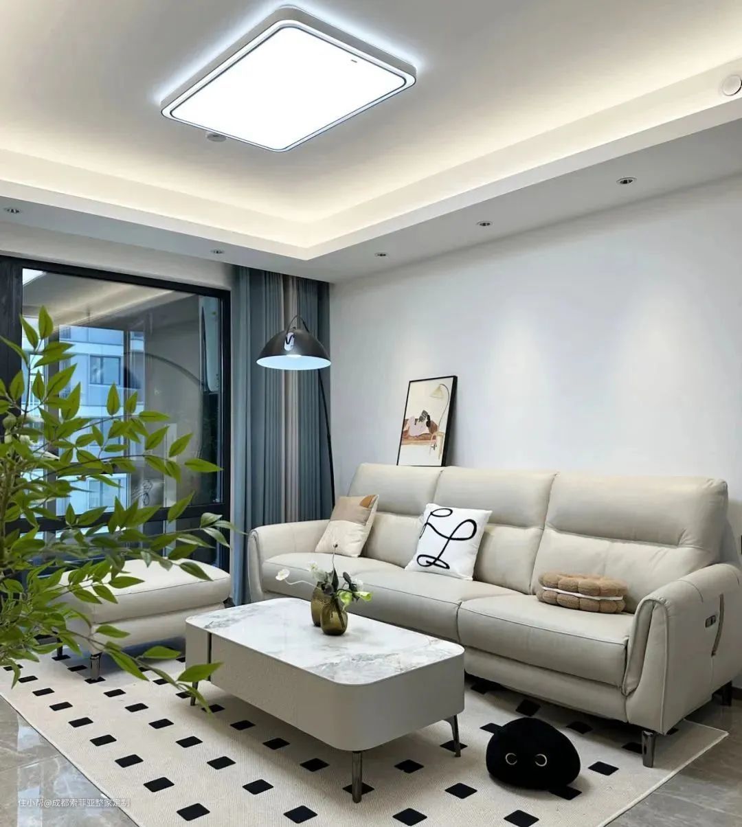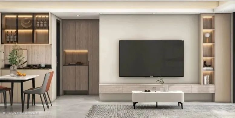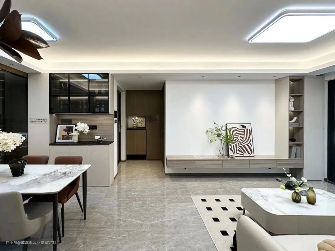 实拍|119㎡现代风三房,全屋奶油色营造出客餐厅温馨感