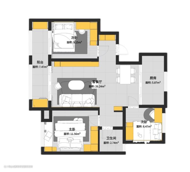 Type / 户型:三室二厅