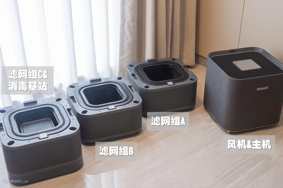 拆开后的H-MAX为5大板块,其中三层均为霍尼韦尔独家Poly Tech复合滤网组,大家可以根据需求进行自由搭配,实现更灵活的使用高度。