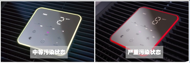 因为加入了光线传感器,Kit还发现H-MAX在关灯状态下,净化器的PM2.5数值以及TVOC状态指示灯都会熄灭,净化器也会自动调为夜间低噪音模式(类似于睡眠模式,但风速更高,可以保证净化效果,睡眠模式的显示数据会更少)但这个功能还是非常实用的。
