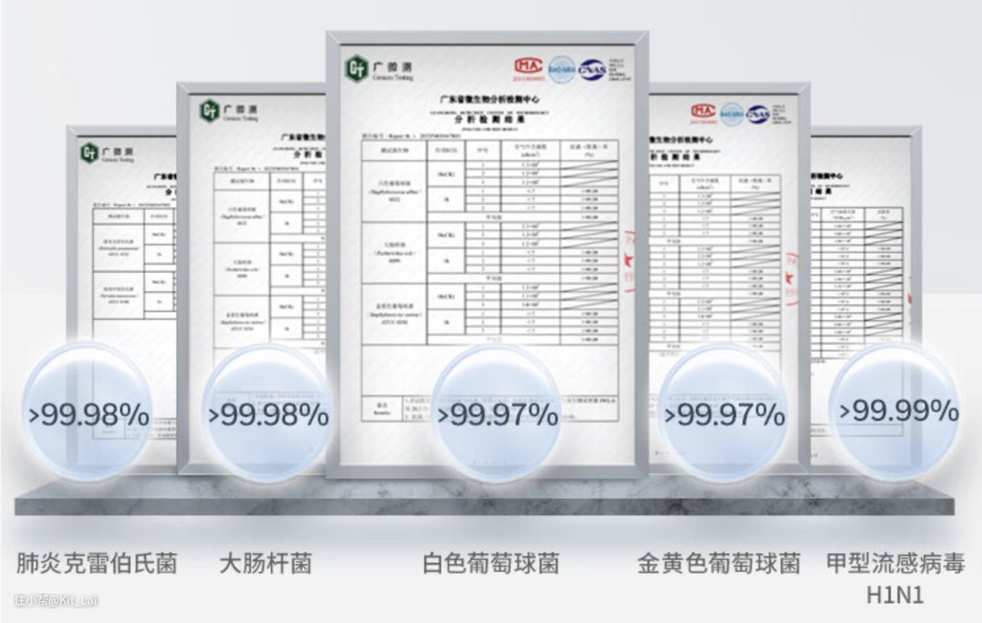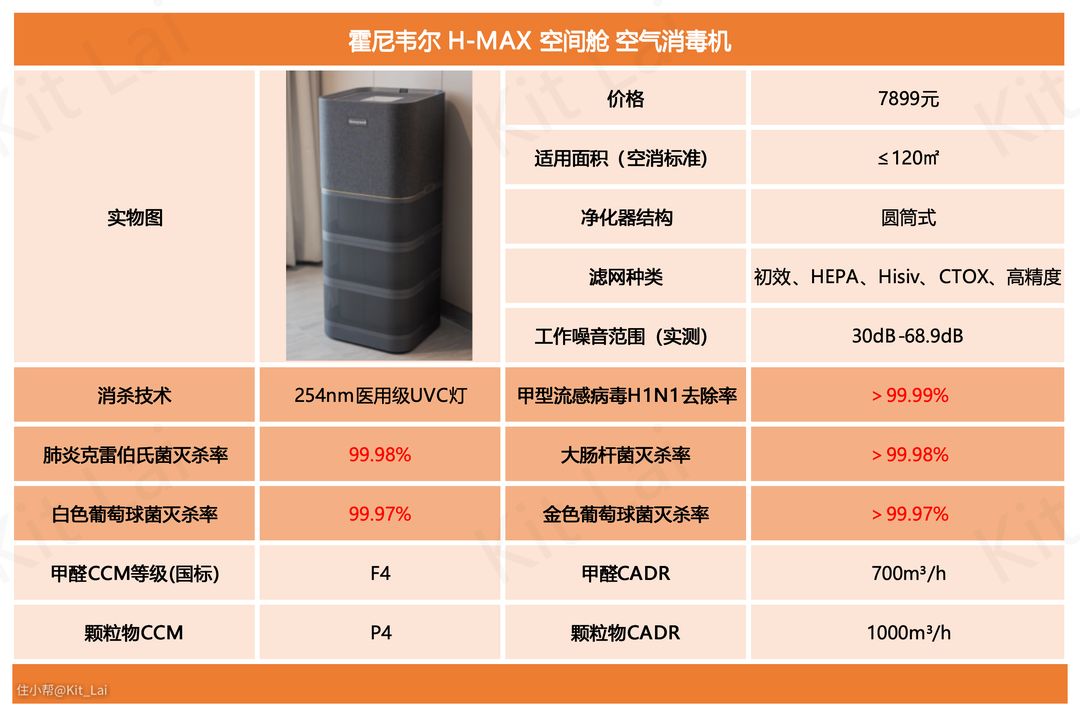 在介绍完霍尼韦尔H-MAX的滤网配置后,在实测前,Kit首先对这款空气消毒机的空气过滤、消杀性能进行汇总并给大家做简单介绍:
