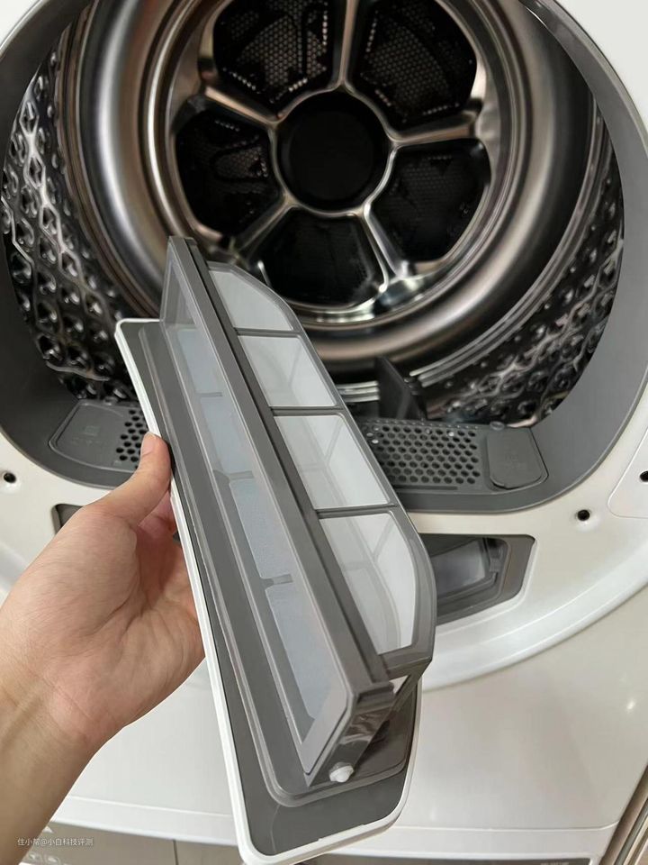 这款的毛屑收集盒真的很大很大一个,多层过滤可以很好的处理细小的毛屑,确保衣物不沾毛减少衣服二次污染,对于家有宠物的家庭来说,更多层的线屑收集可以处理衣物上的毛屑,比较有些衣服上会有很多小小的毛屑肉眼很难发现,我烘了2天衣服就收集到这么多线屑了。