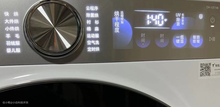 东芝玉兔2.0洗烘套装从操控面板来看也变得简单化,旋转的按钮搭配上触控屏洗烘功能非常齐全,可以根据我们自己的使用需求进行调整,12洗涤程序+12烘干程序非常清晰。