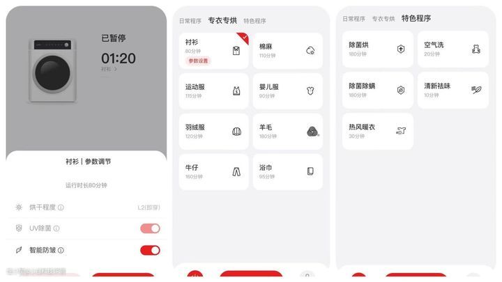 12个程序不管是大件衣物还是棉服都可以轻松应对,尤其是婴儿洗和除螨洗非常适合有小朋友的家庭或者养宠物的家庭选择。