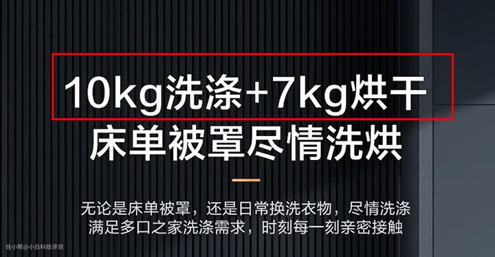 传统洗烘一体机可能洗10kg衣物却只能烘干7kg所以就会出现衣服烘不干的情况。