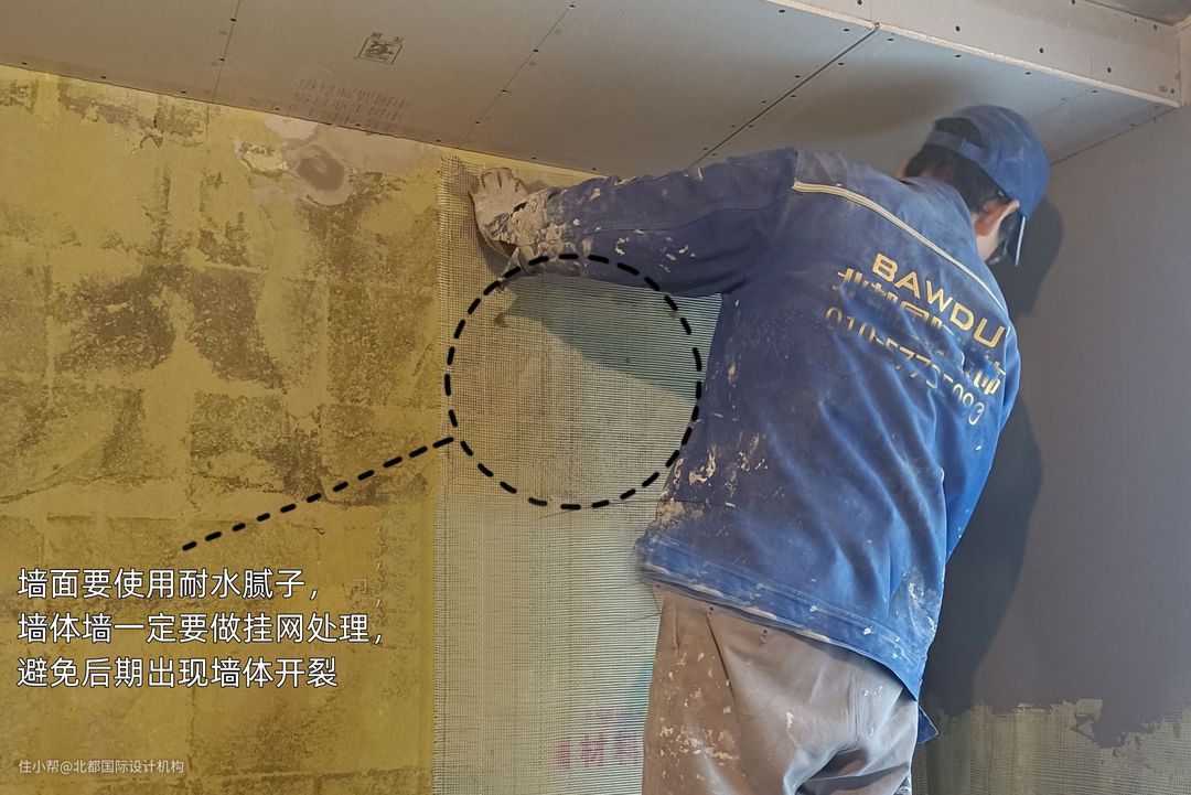 卫生间防水高度非常重要,淋浴区防水高度不应小于1.8m,洗漱区控制在1.5m左右,这个高度是根据人们的常用习惯和身高总结出来的,否则会出现渗水、漏水现象;