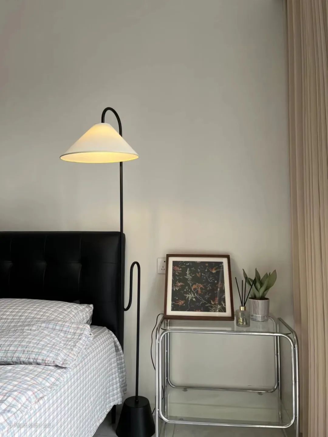 选择时,建议灯具选择高于床头或者可自由调节的,使用起来更方便;另外,如果空间充裕,还可以选择带有置物功能的落地灯,替代床头柜,一举两得。