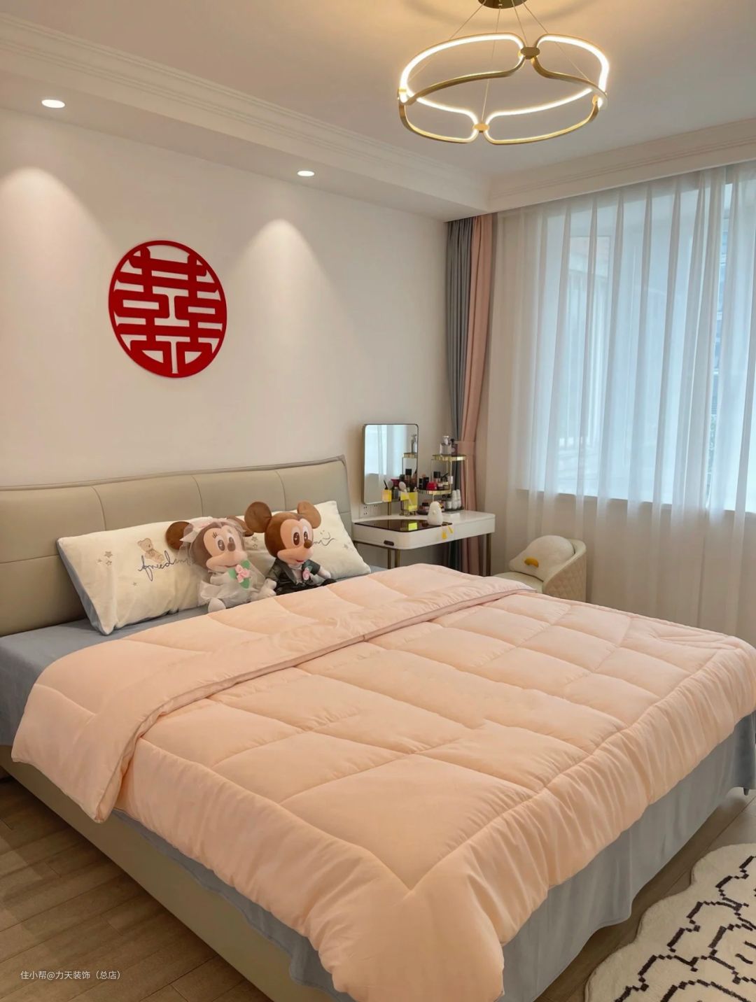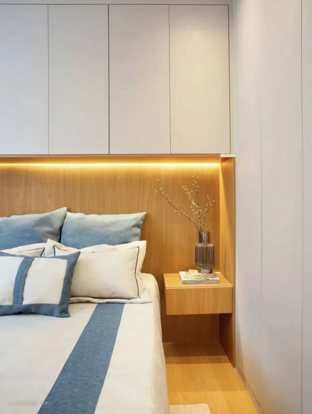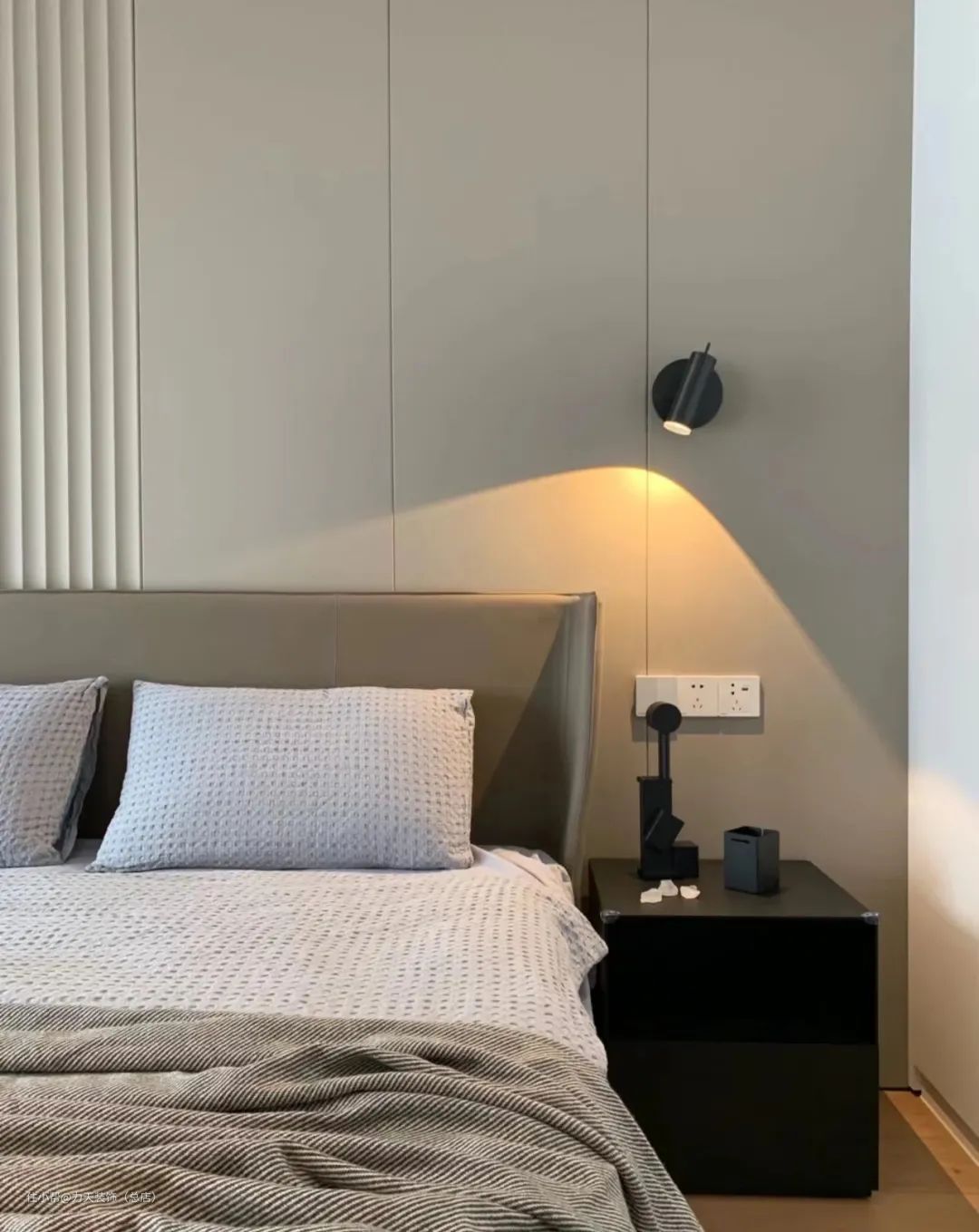 切记在水电改造阶段就要确定好位置,建议提前确定床的款式及尺寸,避免壁灯与床距离不恰当,或左右不对称的尴尬问题。