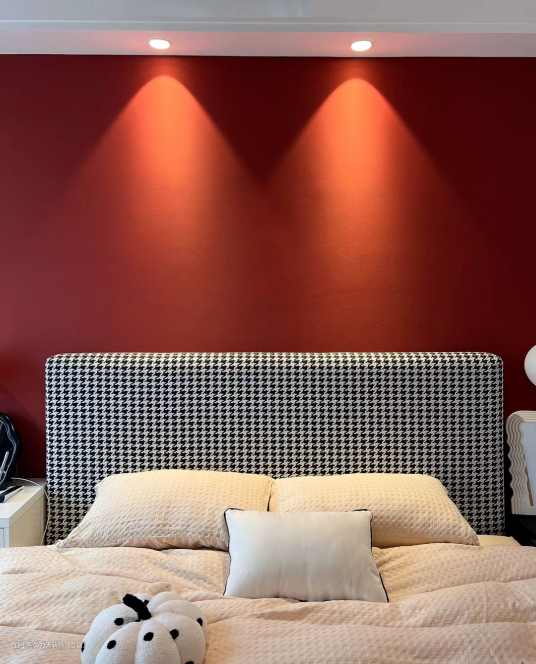 但射灯本身亮度高、照射范围大,如果直射床头可能会造成眼部不适,安装时建议提前询问设计师建议,调整射灯的角度,并选择光照范围合适的射灯,从而削弱影响。