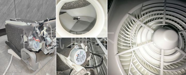 贯流风扇直径有106mm,这个直径算比较大的,其他很多机型普遍是90.4-94mm这个区间,同等送风量下,贯流风扇直径做的越大,风噪会越低,而且做了动平衡,转动的噪音更小。