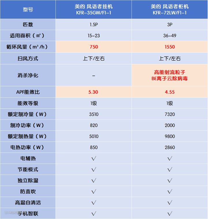 “风语者 挂机F1-1”适用于23㎡内的中小房间,49㎡内的大客厅直接上“风语者 柜机F1-1”。