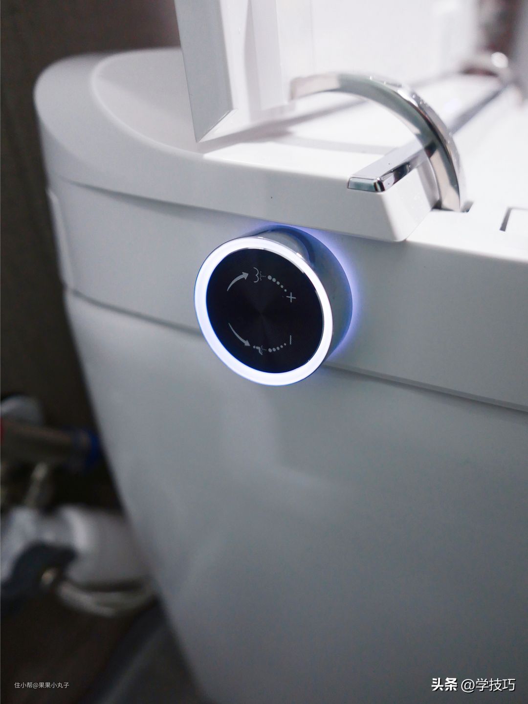 不仅仅如此,为了满足不同人的个性化需求,马桶侧面还有可以调节臀洗和妇洗的旋钮,无极调节使用起来极为方便。