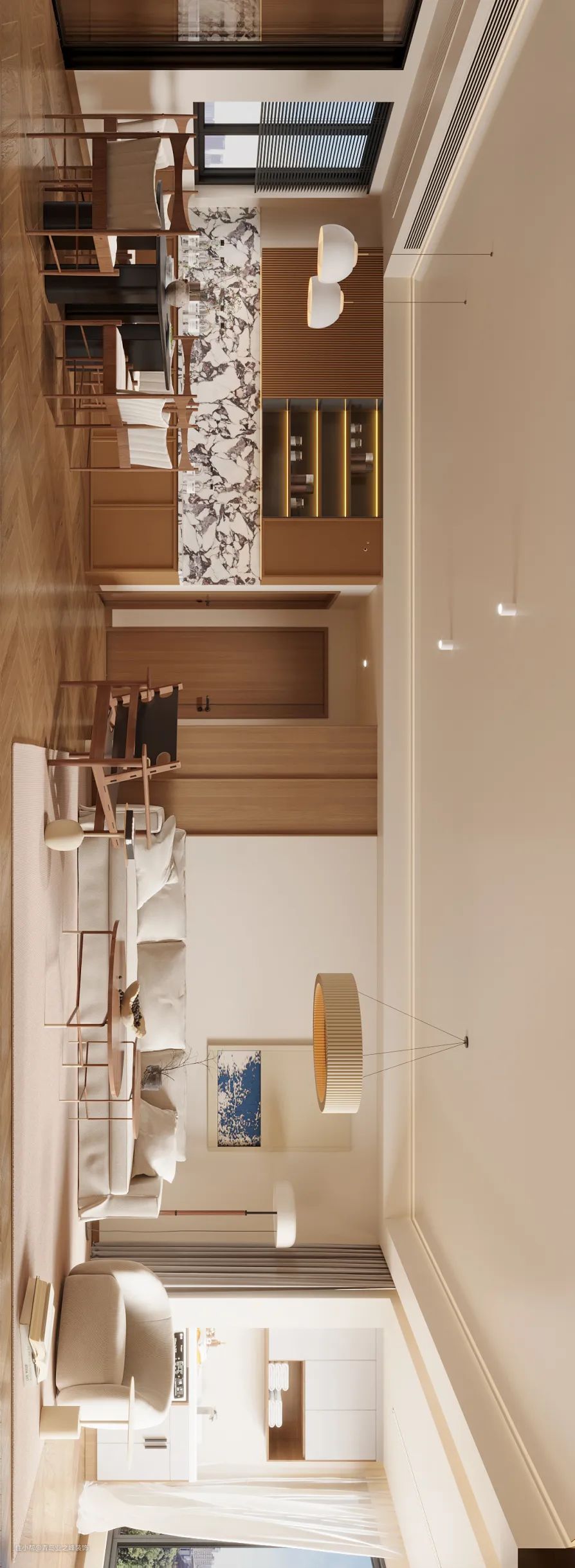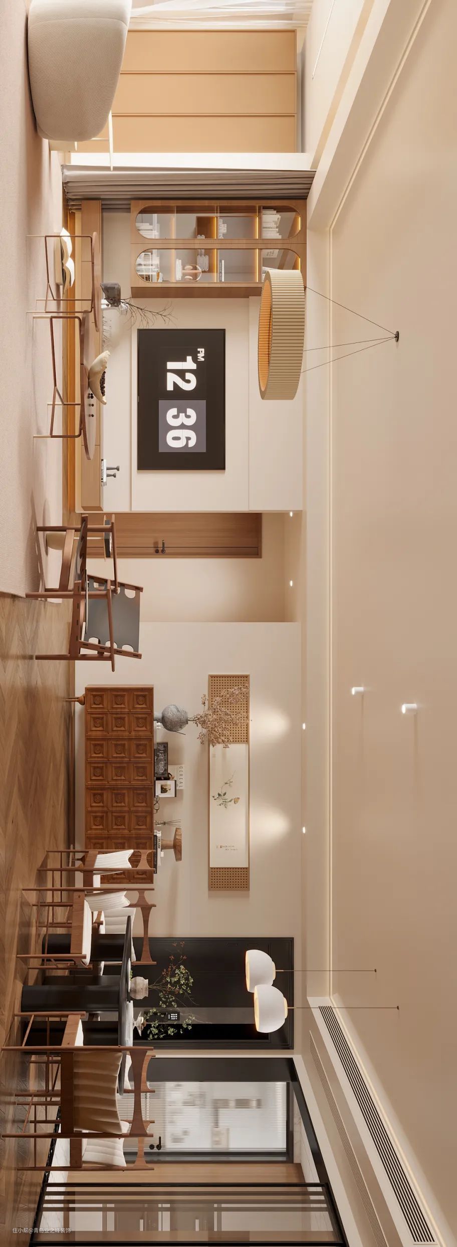 原木本事自然界的产物,运用在家庭中,显的设计亲和,空间感自然舒适,给人返璞归真的惬意与轻松地气息。