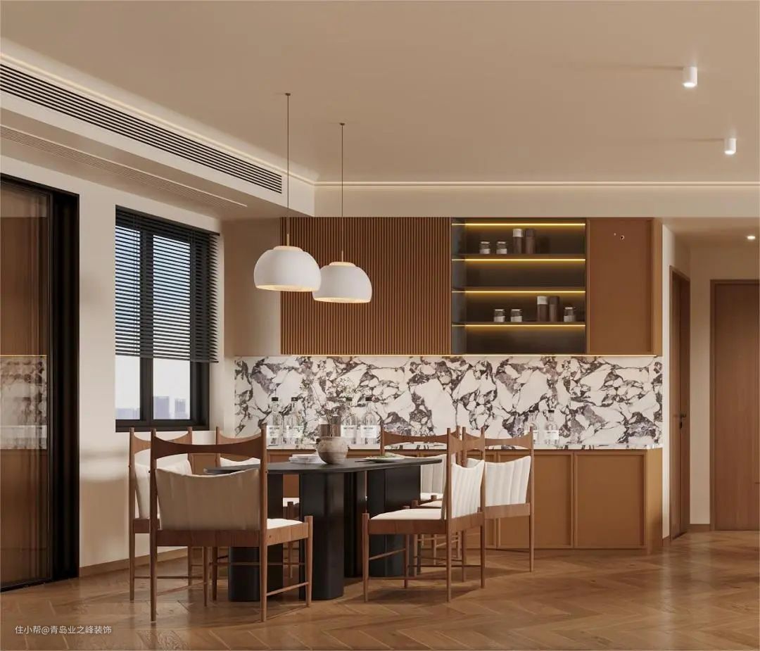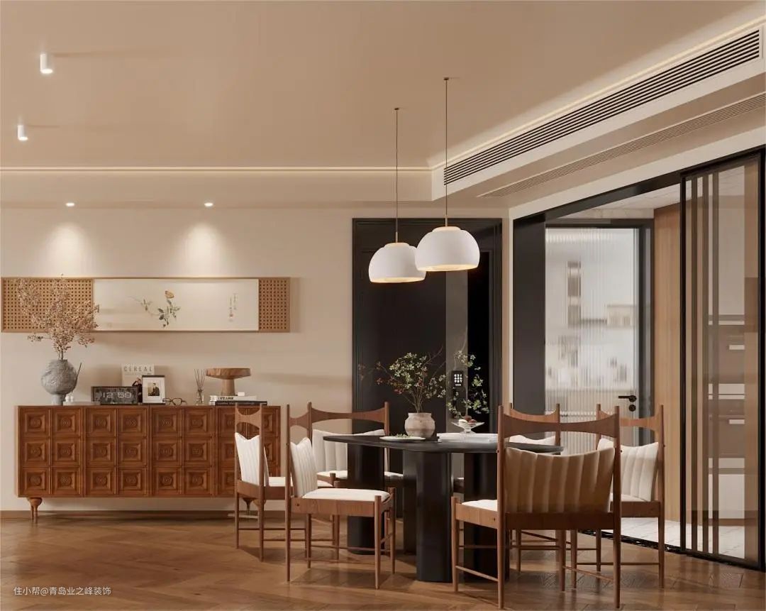 餐桌选用黑色系,在原木风优雅韵味的基础上,岩板桌面更加坚实耐用,两种色系元素的交汇,碰撞出与众不同的美感。