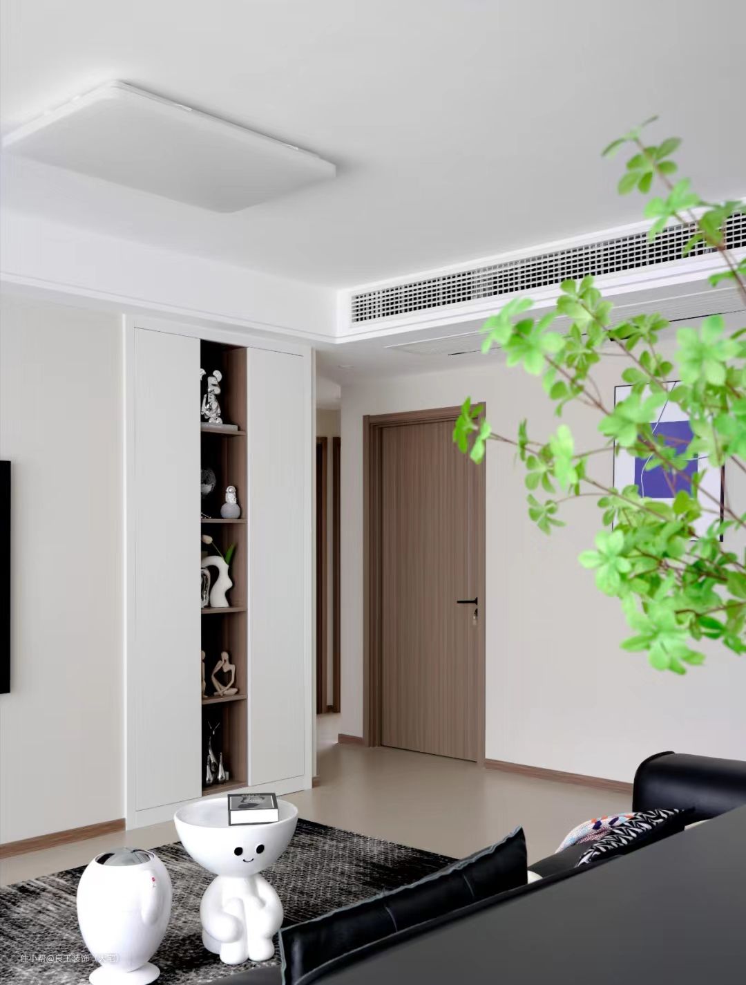 回形吊顶的施工也相对简单,能有效遮挡新风管道、空调管道、横梁,最大程度保证空间的完整与氛围感。当然,它也有缺点,藏匿灯带的凹槽处容易落灰,不易打理。