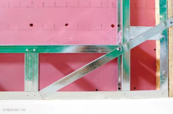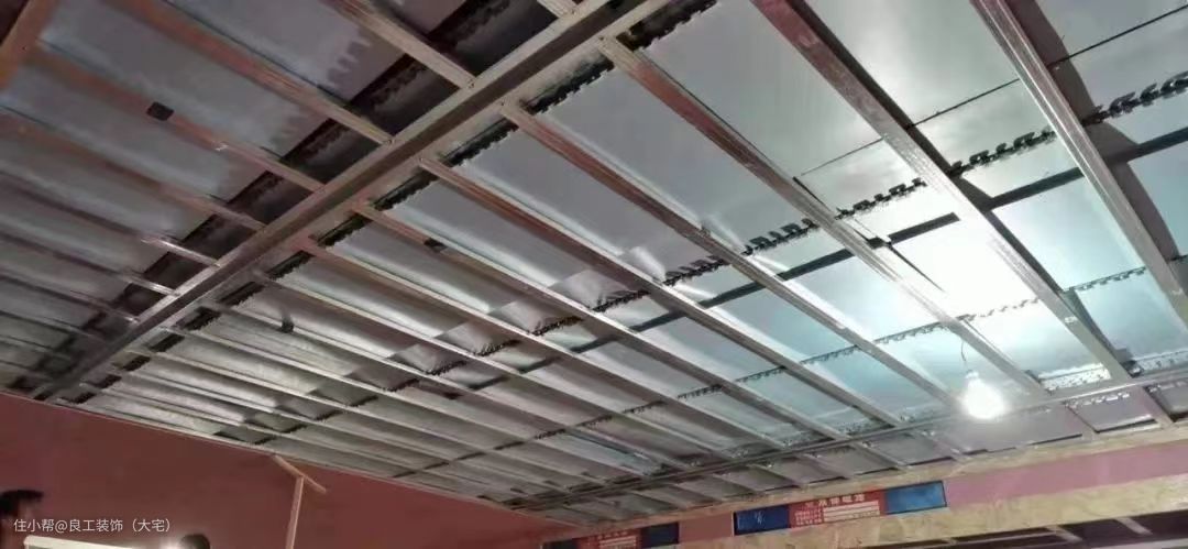 △良工家装采用的吊顶均是轻钢龙骨吊顶,可以有效防止受潮或开裂。在吊顶拐角处拉斜三角,可以防止后期开裂。