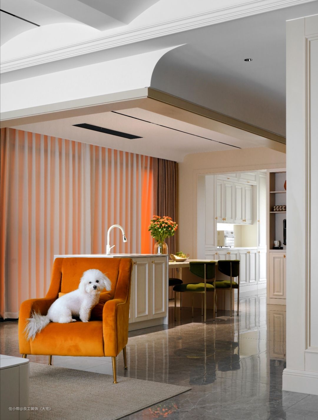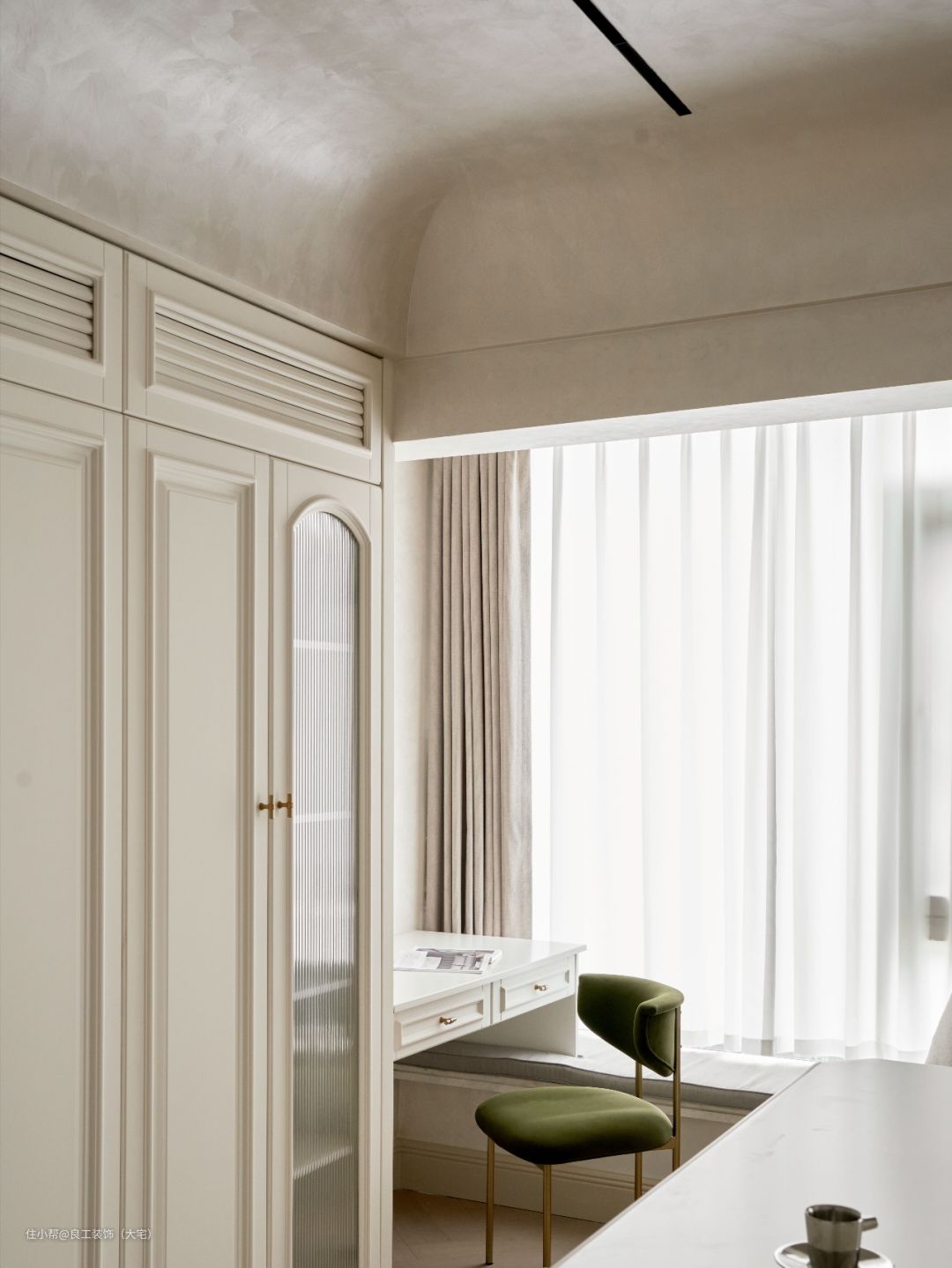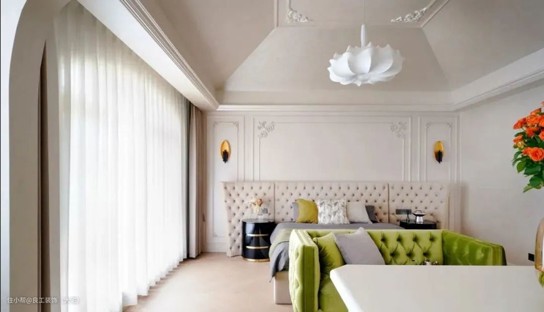 如果家里的天花板存在横梁或者层高够高,可以考虑拱形顶。拱形顶是在原始的平顶中间向上延伸,视觉上可以放大层高。