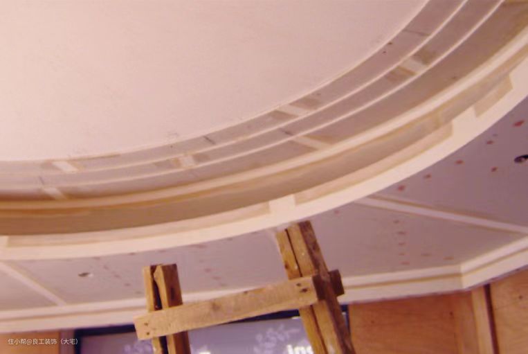 当然,弧形吊顶也有不可忽视的缺点,那就是施工难度大,造价高。想要做这样的吊顶,不仅损耗的材料较多,而且对工人技术要求也相对较高。