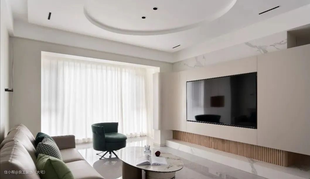 也可以弱化横梁的存在感,使其与吊顶过渡自然,在不经意间还能流露出家的温柔感。