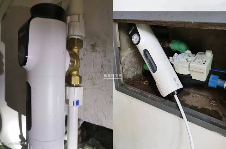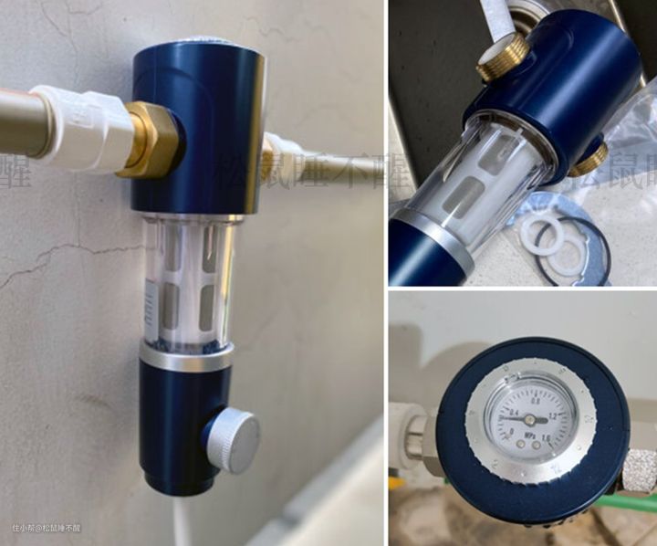 像每隔一段时间,总是要手动去清洗一下龙头滤网、洗衣机滤网、花洒滤网等,不清理,水就会变小,而有了前置,每个月只需要花一分钟,定期冲洗一下前置的滤网就行,关键是这个过程还不脏手,打开排污阀,看着它自己冲就行。