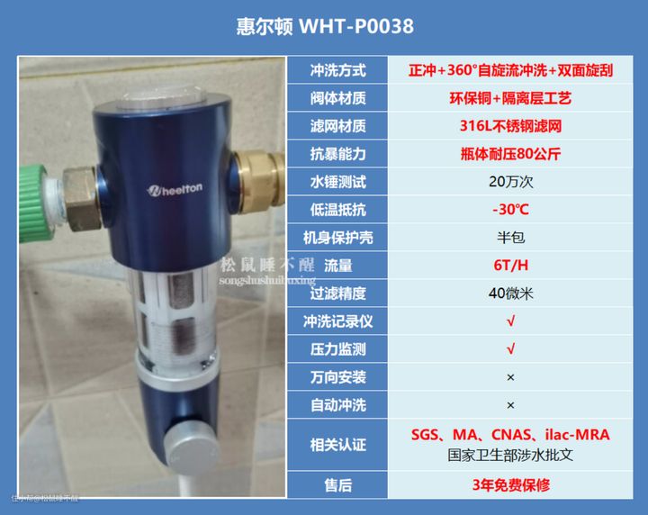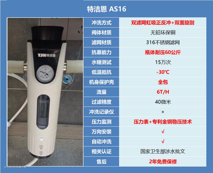 双涡轮的优势在于免手动刮洗,手动也只是手动去开阀而已,冲完关上就好,细节上配备了“压力监测、冲洗记录仪”,功能挺全面。