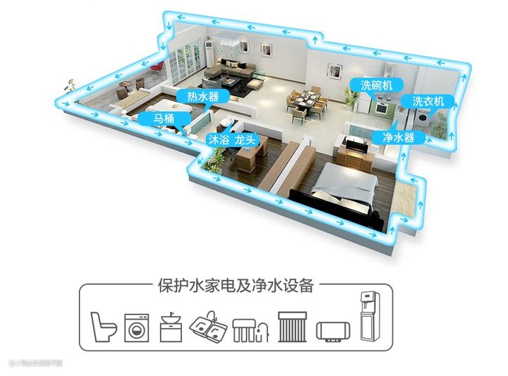 它的作用很简单,就是把入户水质还原成出厂状态,避免大颗粒物进入室内管道,从而保护全屋的涉水电器。