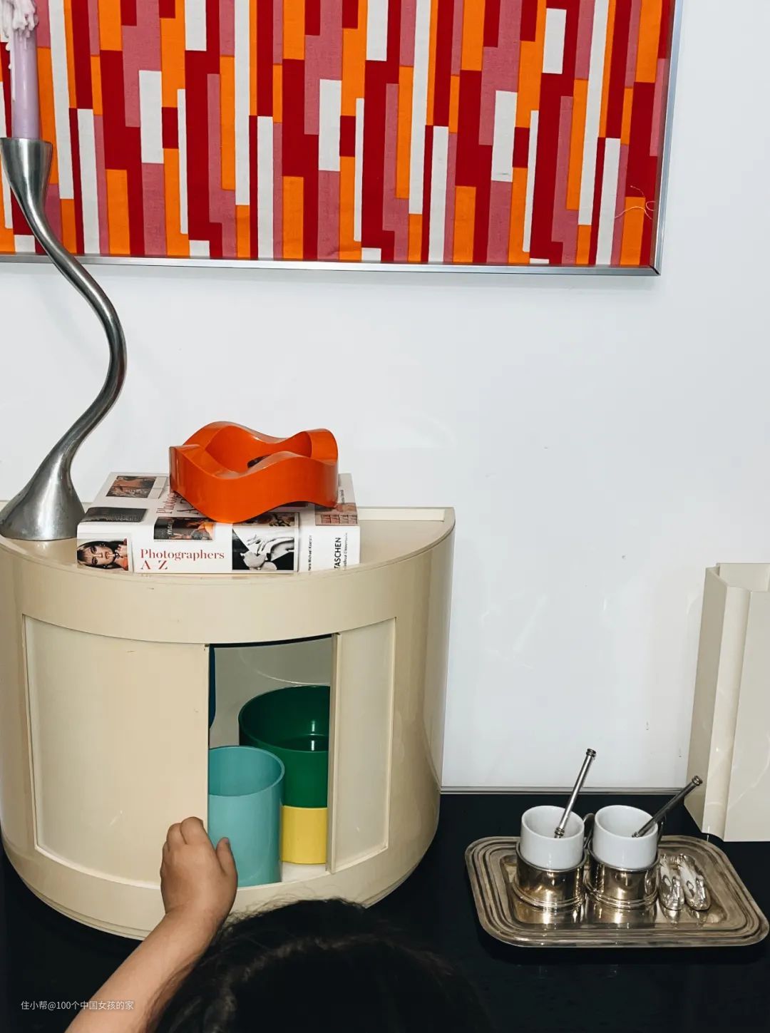 “这些软装都来自中古家具里比较细分的Space Age太空时代,我个人很喜欢这个时期盛产的塑料、不锈钢家具,它们自然形成了属于我家的气质。”