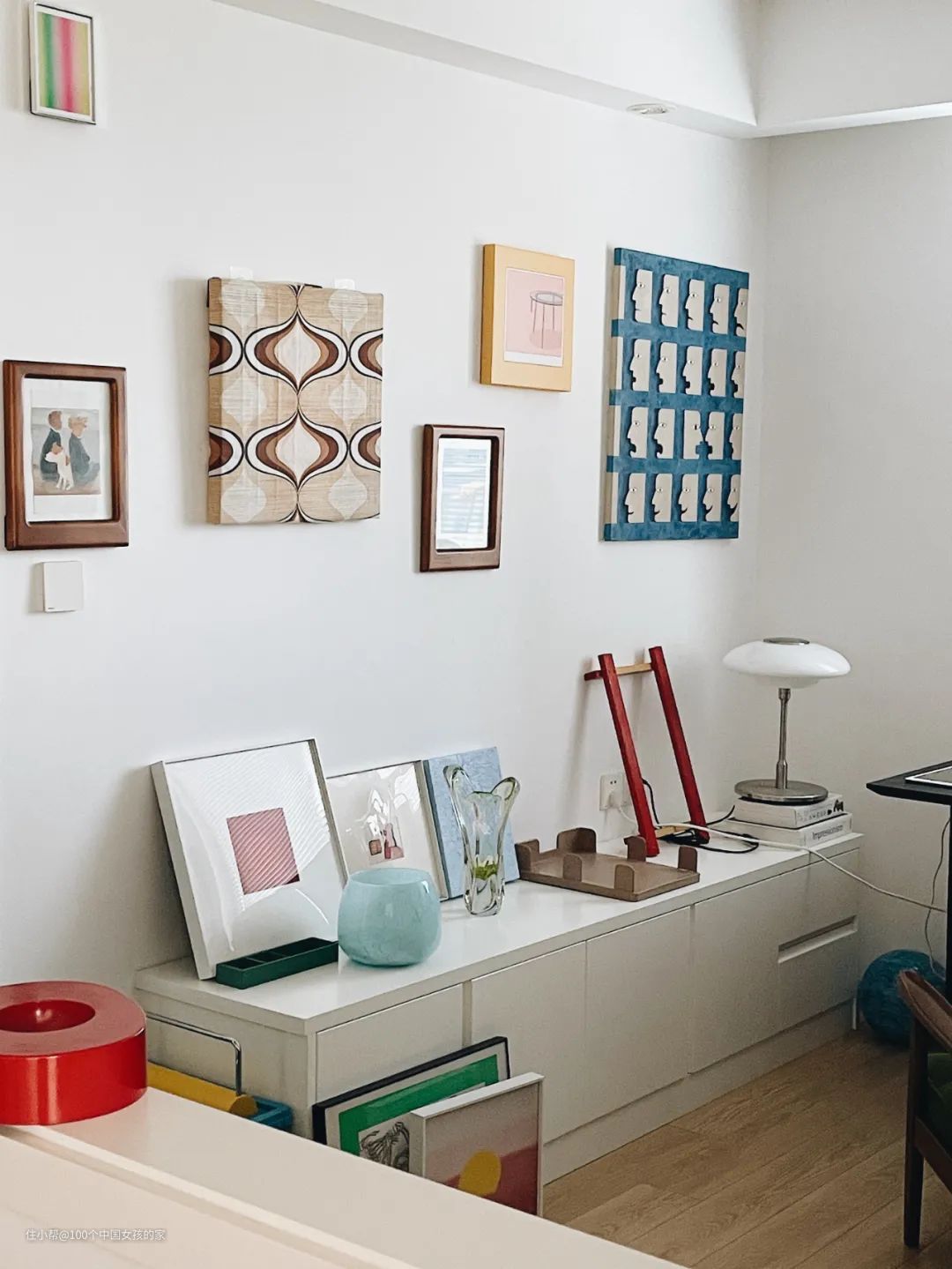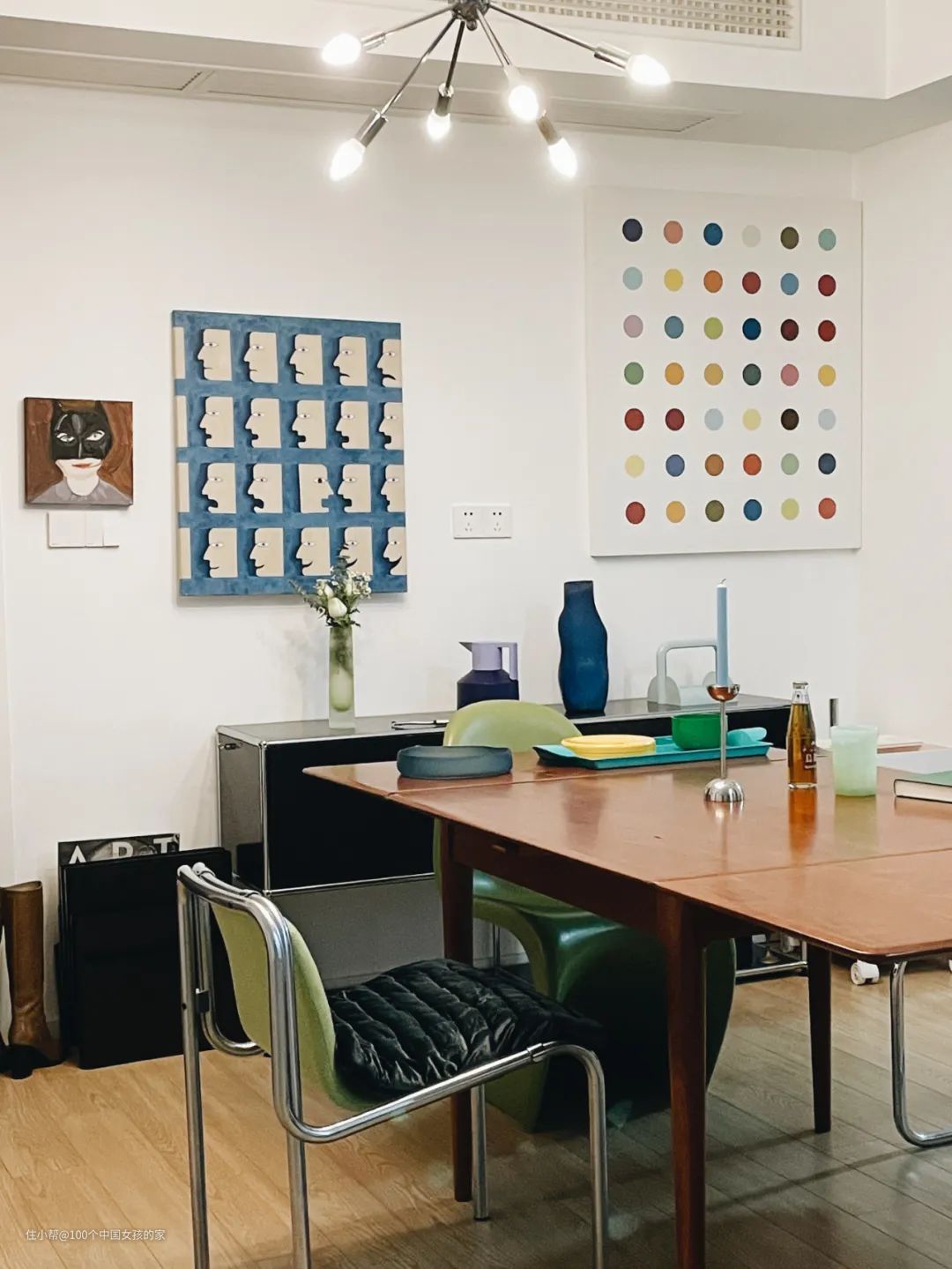 “我家某个区域有一段时间是蓝色调的,比如说,我会先挂一幅蓝色的画,像做美术陈列一样,为这个场景搭配同色调的软装,过段时间,又可以通过更换画、椅子、桌子,把这一片变成红色、橘色、红棕搭配的色调,这是我们平时可以去练习的思路。”
