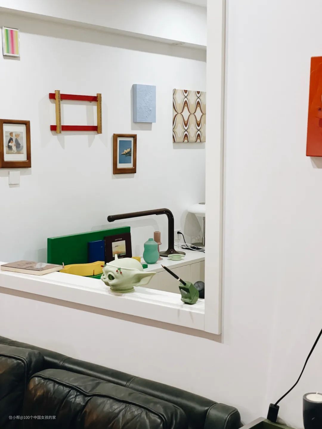 “我的初衷是不想要这面墙的,想要一个完全通透的空间,后来觉得打墙洞是相对折中的处理,既实现了通透,后期又可以加一扇窗,有改成卧室的可能。”