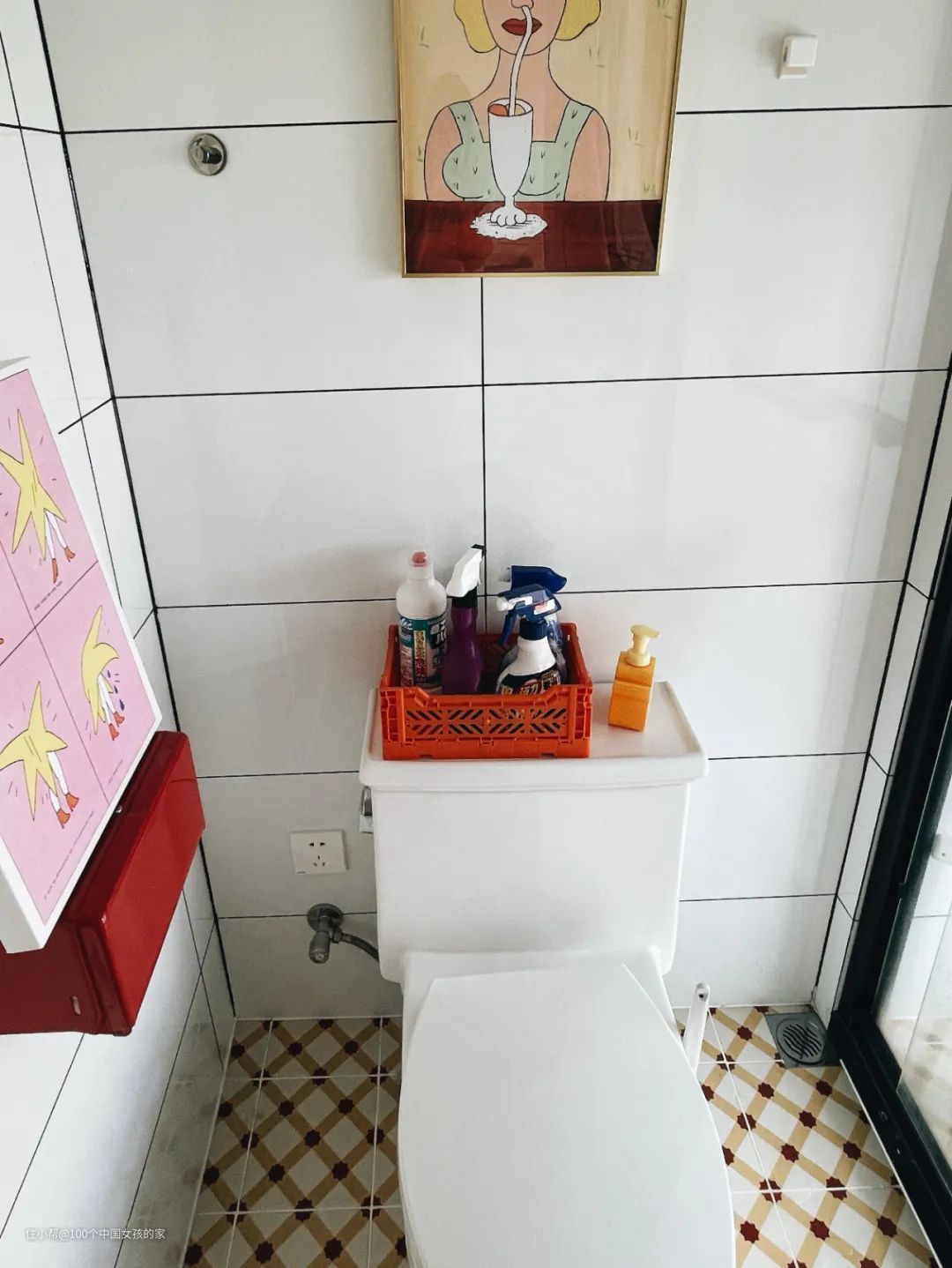 “爸妈都喜欢用大理石、在天花板装饰石膏线那种他们认为的、贵气的设计,觉得我的房子太素、像出租屋,还铺了他们觉得不太正经的花砖。但我自己很喜欢细节上色彩缤纷的碰撞,所以厨房和卫生间都用了花砖。”