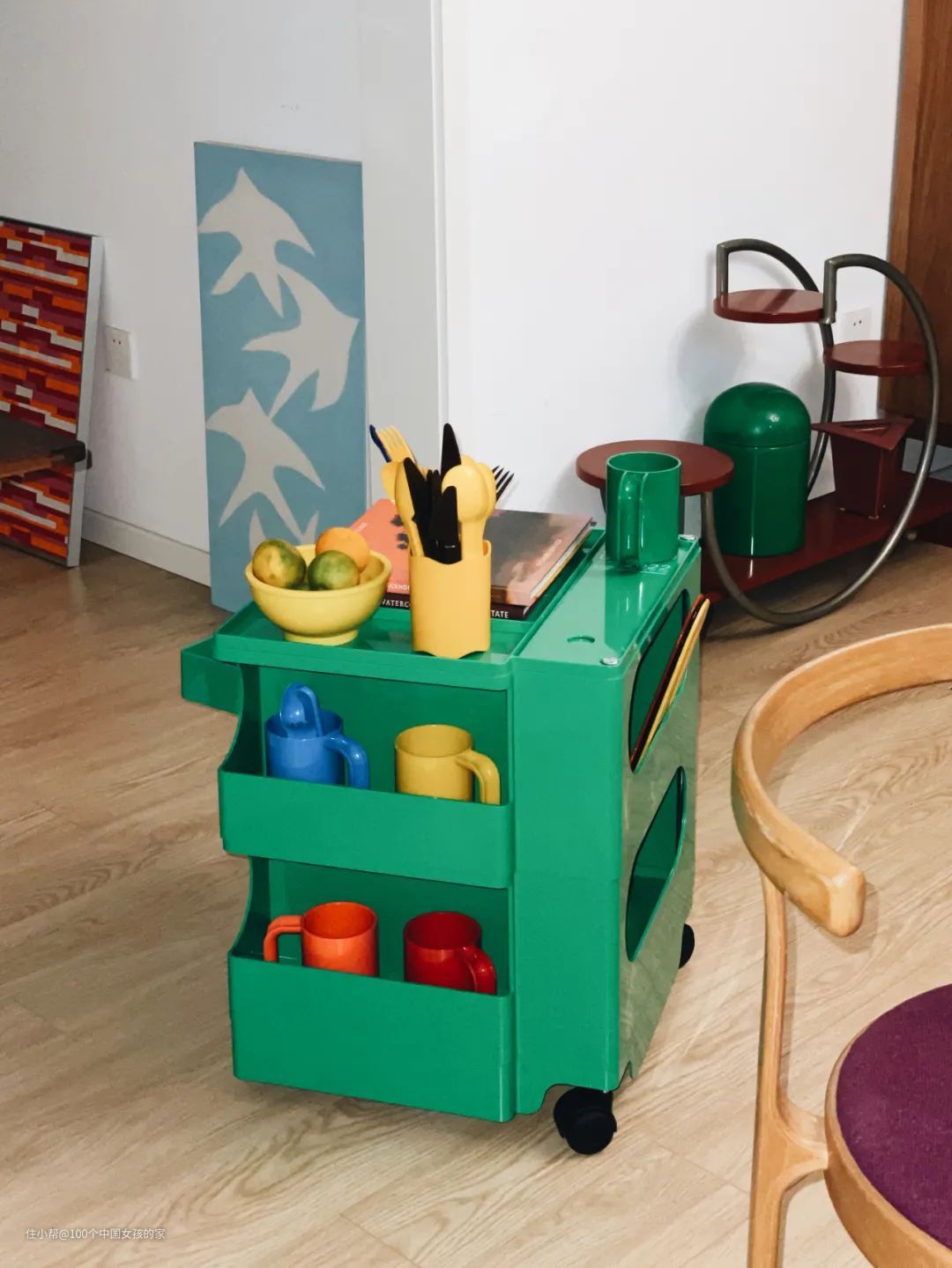 另一件客厅里的颜值担当,非B-line的小推车莫属,看客厅的第一眼就落在这一抹抢眼的绿上,发自本能地想夸它真好看!