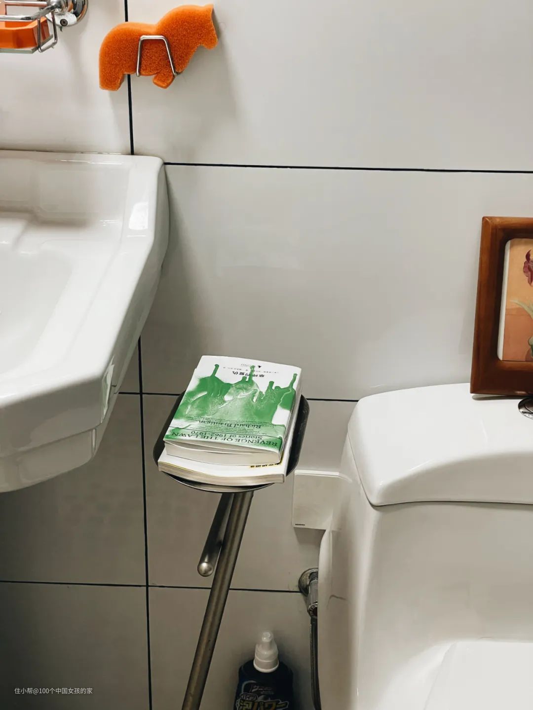 最可爱的是,她在马桶旁边安了一个“马桶读物专用书架”,只能容纳一本纸质书。