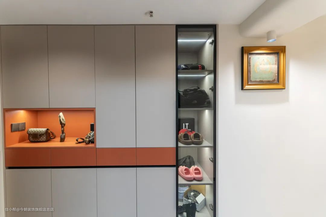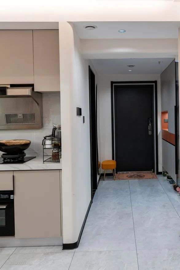 弧形设计可以柔化尖锐感,凸显温柔感。回家时,一进门,第一眼就感受到柔和温暖的氛围,瞬间放松疲惫的身心。