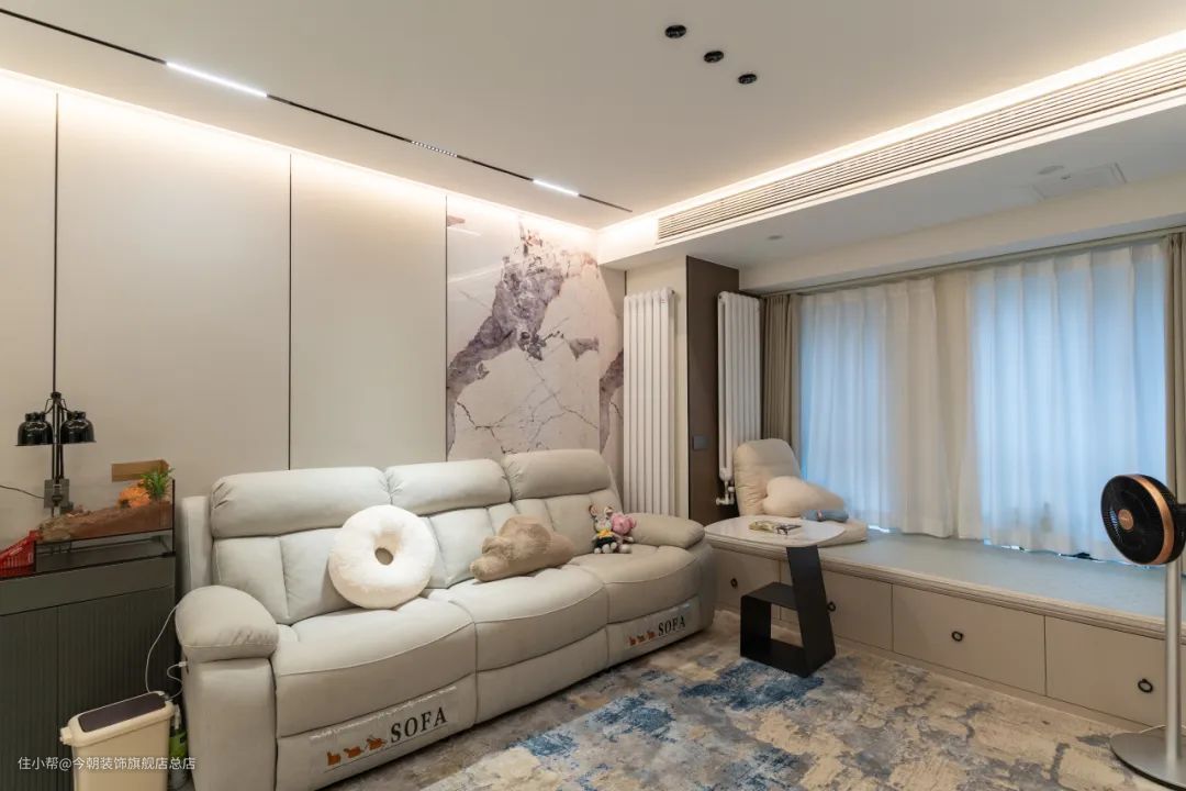 全屋采用中央空调+新风系统的通风设计。在拆除部分非承重墙的同时,增加通风口和换气设备,确保空气流通。