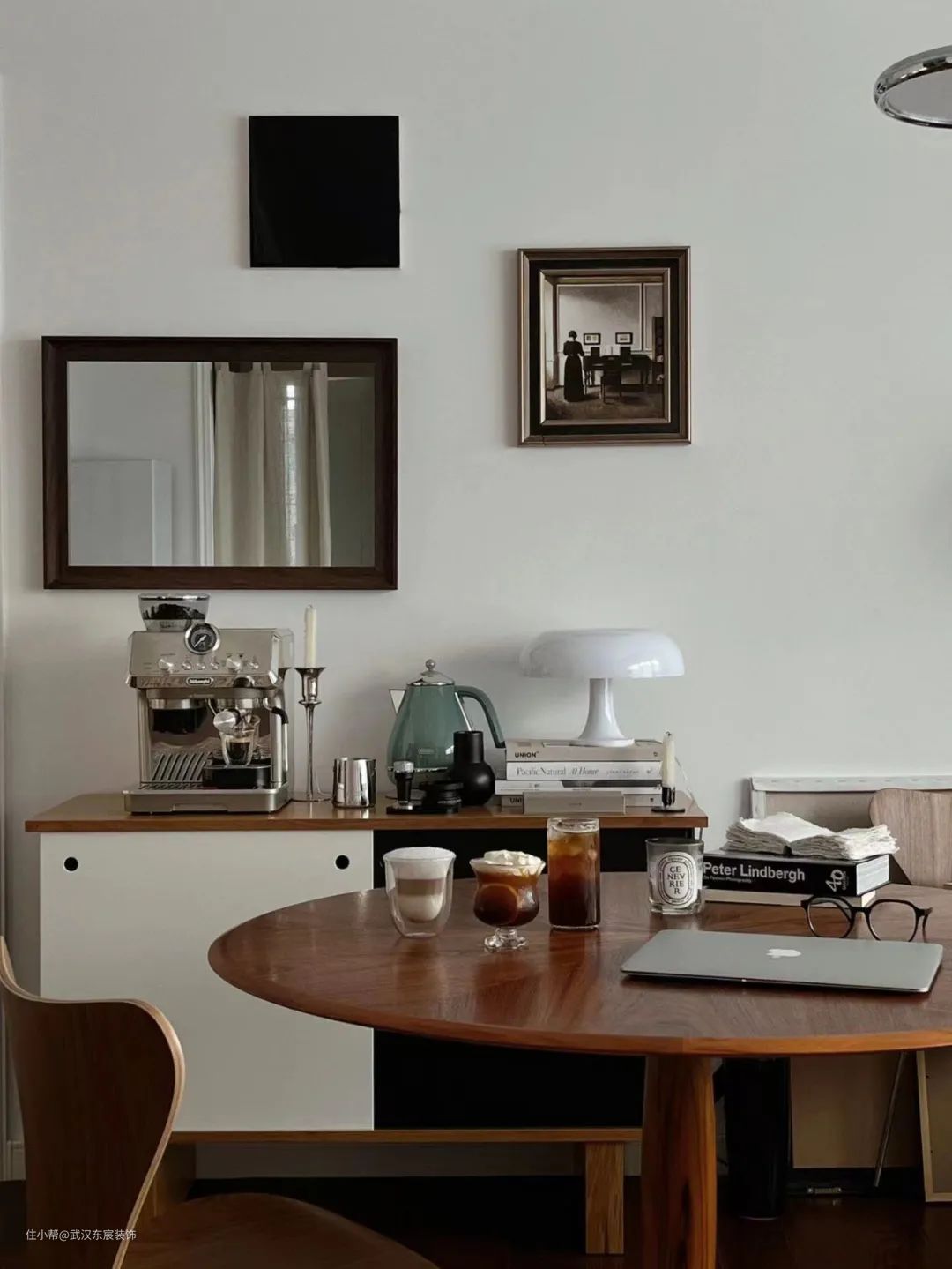 现在我们的咖啡角已经初具规模了,功能性已经完备了,只需进行一些装饰。盆栽、香薰蜡烛、画、小饰品、壁灯等,都可以用在咖啡角作为装饰。