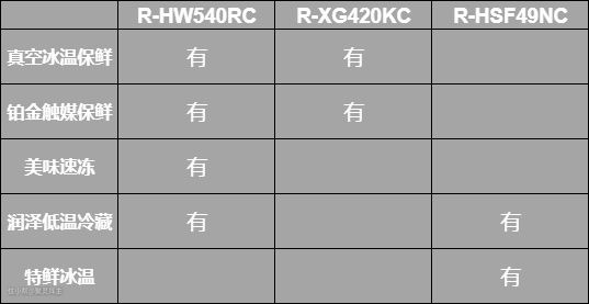 为了让大家更直观的了解推荐的三款冰箱分别搭载了哪项技术,制作了下面这张图以供大家参考。