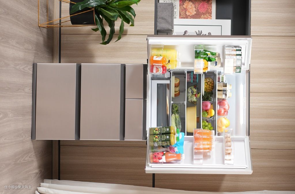 冷藏室的隔板可调节高度,大小不一的食材也能轻松摆放,大冷冻室也是多层分好的,这个冰箱似乎在教你如何简单收纳。