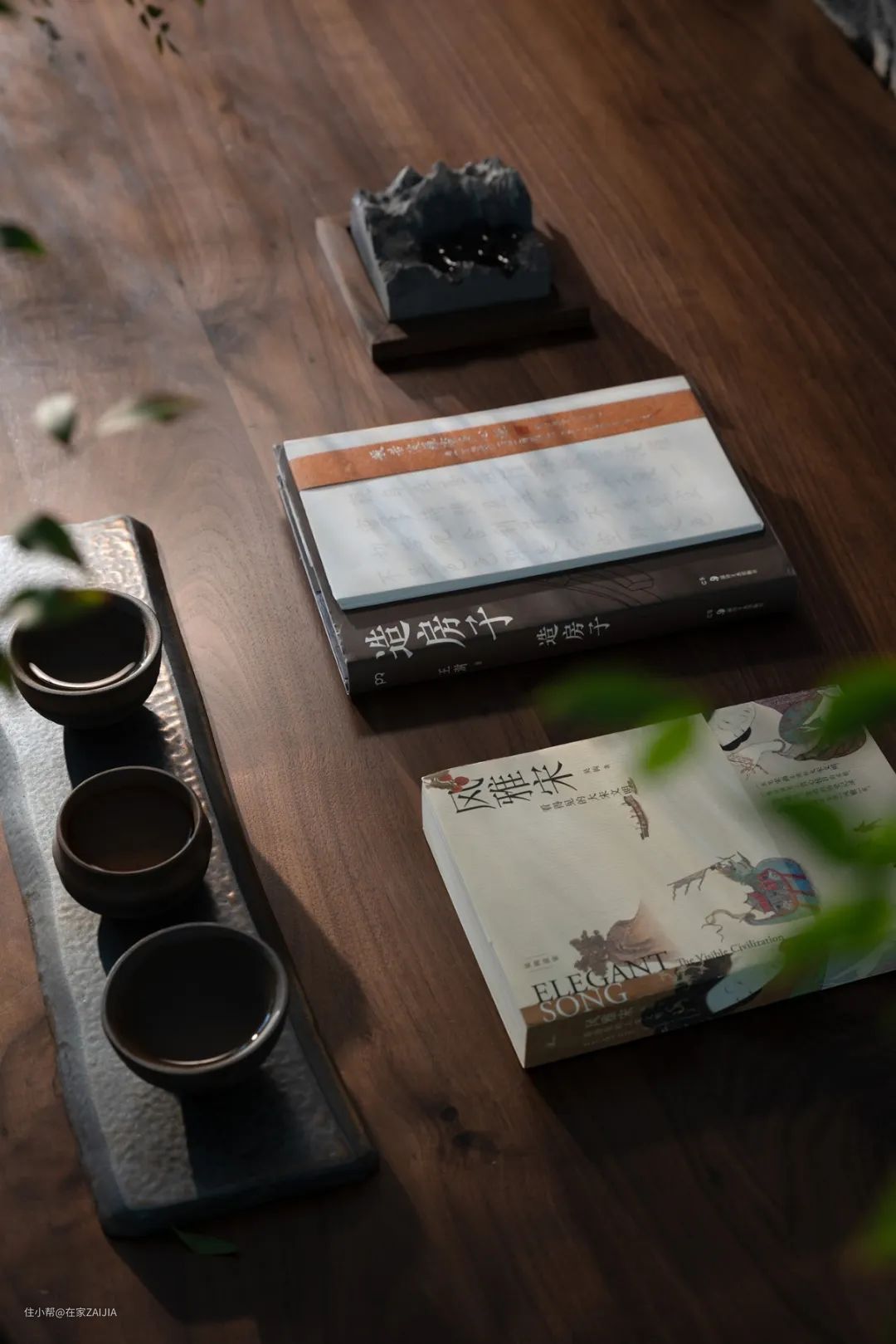 茶桌后便是小书柜,屋主喜欢看的书籍都能收在伸手就能取到的地方。闲暇午后,煮一壶淡茶,静静的看会儿书,没有比这更惬意的事了吧!