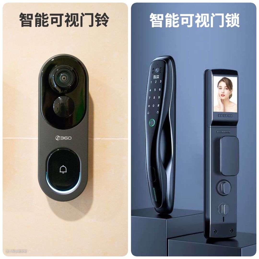 现在主流的可视对讲设备有可视门铃和智能门锁两种, 各有各的好。 可视门铃安装方便, 高度可以调, 可以看到来人的正脸。 智能门锁集成度高, 整体性好。 我建议大家安装方式是一个可视门铃, 一个智能门锁, 我自己也是这么装的。