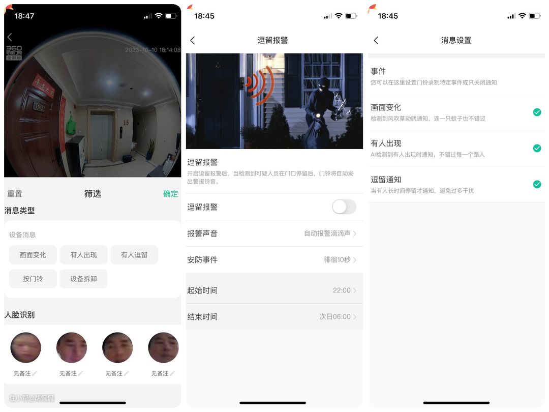 360 6Pro、萤石EP3X、小米 门铃3 都支持强拆报警。