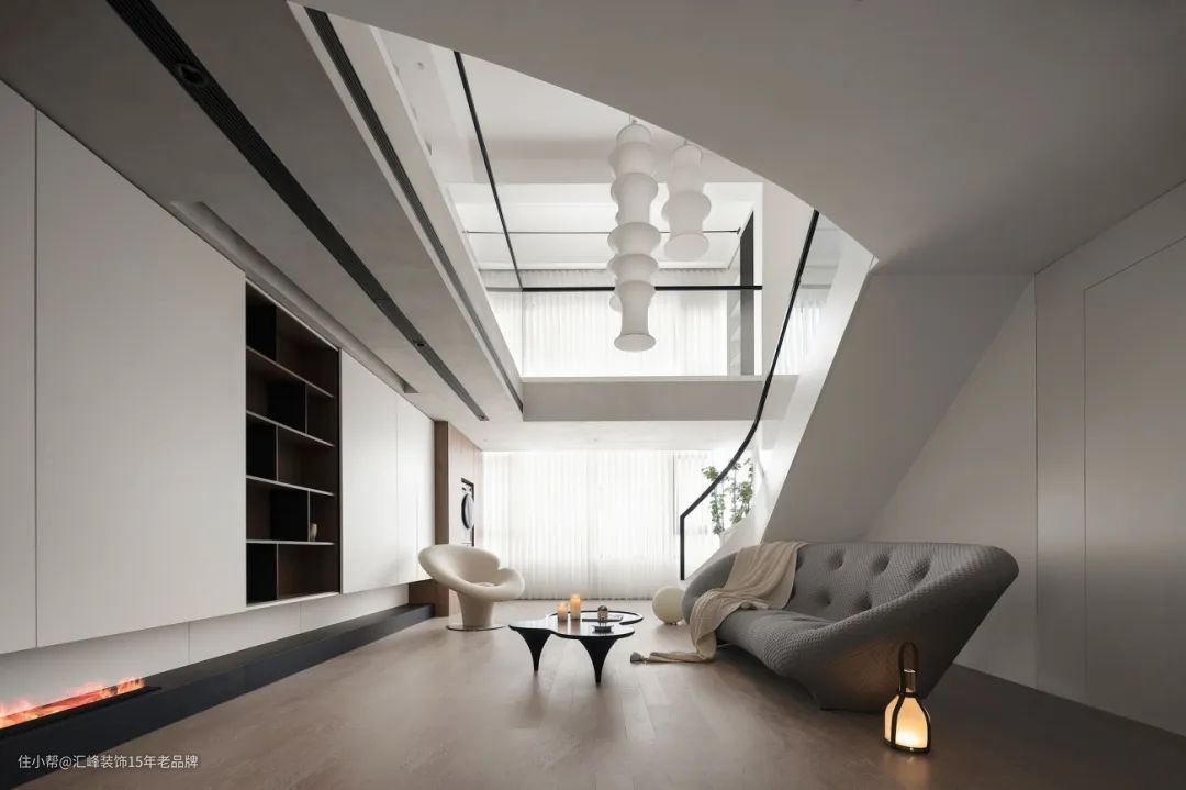 悬浮式设计现代感十足,这种极具设计感的造型一出现便深受年轻人的青睐。这种设计不仅有效减轻厚重感,化繁为简,增加背景活动画面,还能将客厅的高级感拉满。
